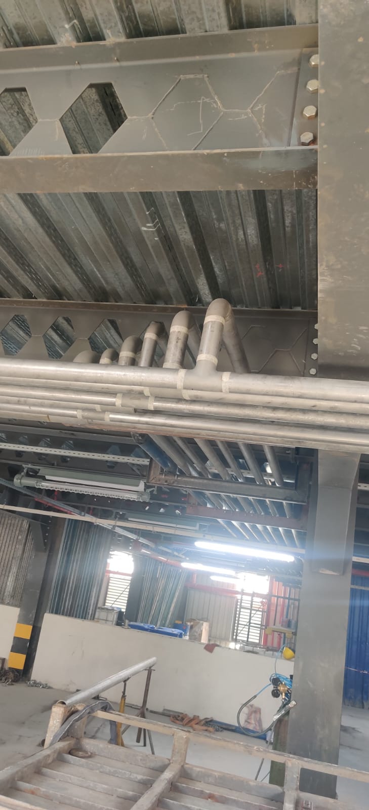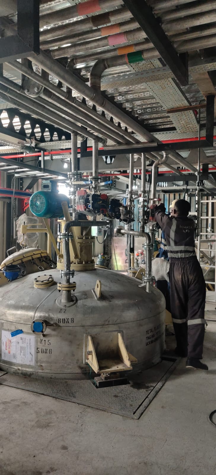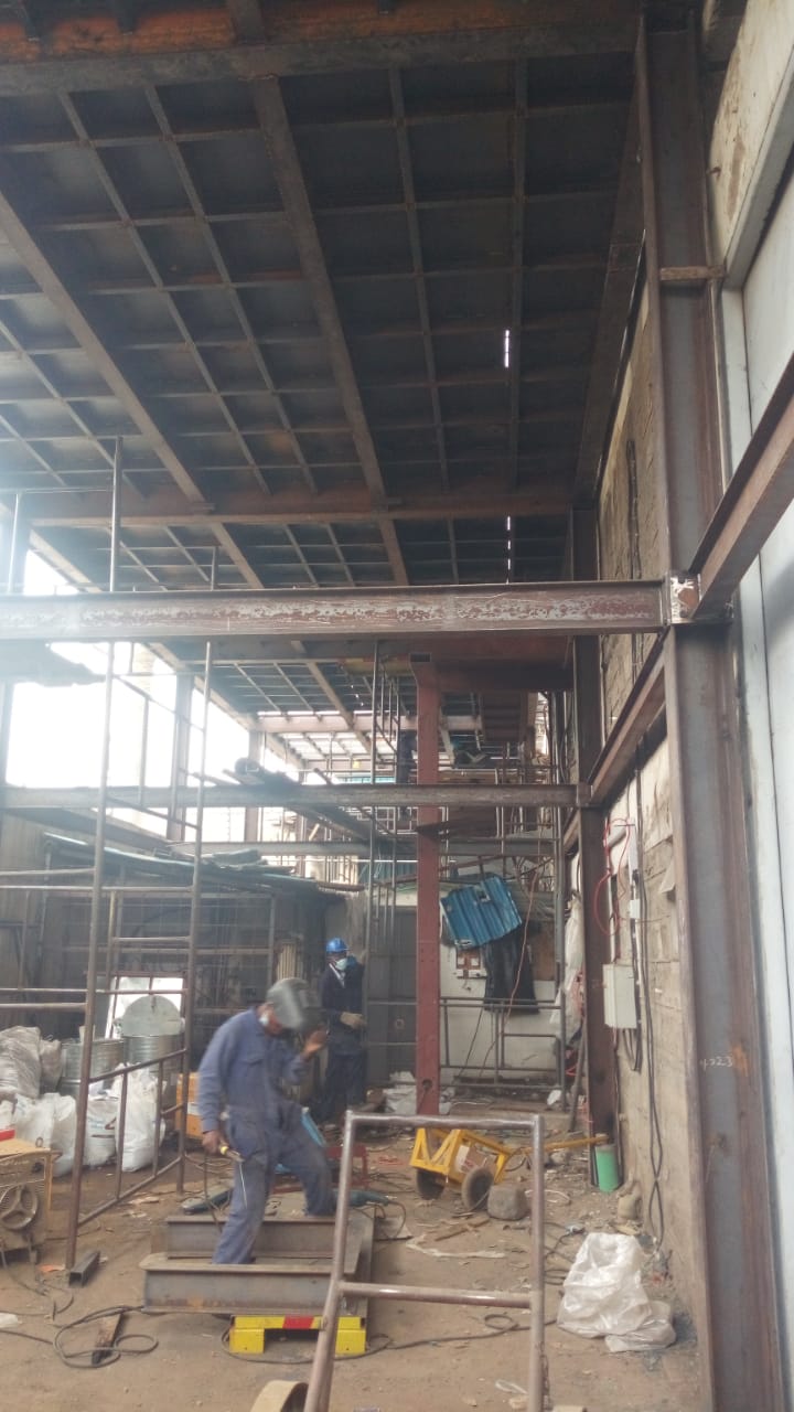 1. Factory installation of reactors complete with stainless steel piping and plant commissioning 2. Safety Hand rail fabrication and installation 3. SS vessels 4. Steel structure mezzanine fabrication and installation 5. ETP disposal tanks 6. Tank fabrication 7. Edible oil tank fabrication and erection complete with loading station in Mombasa 8. Roofing with Polycarbonate Sheets and Water Proof Nets Roofing with Polycarbonate Sheets and Water Proof Nets (3) Roofing with Polycarbonate Sheets and Water Proof Nets (1) Roofing with Polycarbonate Sheets and Water Proof Nets (2) 9. Fabrication of Footbridge More Projects 1000 liters air receiver SS piping complete with machinery ingress (1) SS piping complete with machinery ingress (3) SS piping complete with machinery ingress (4) SS piping complete with machinery ingress (2) SS hopper for food storage (2) SS hopper for food storage (1)